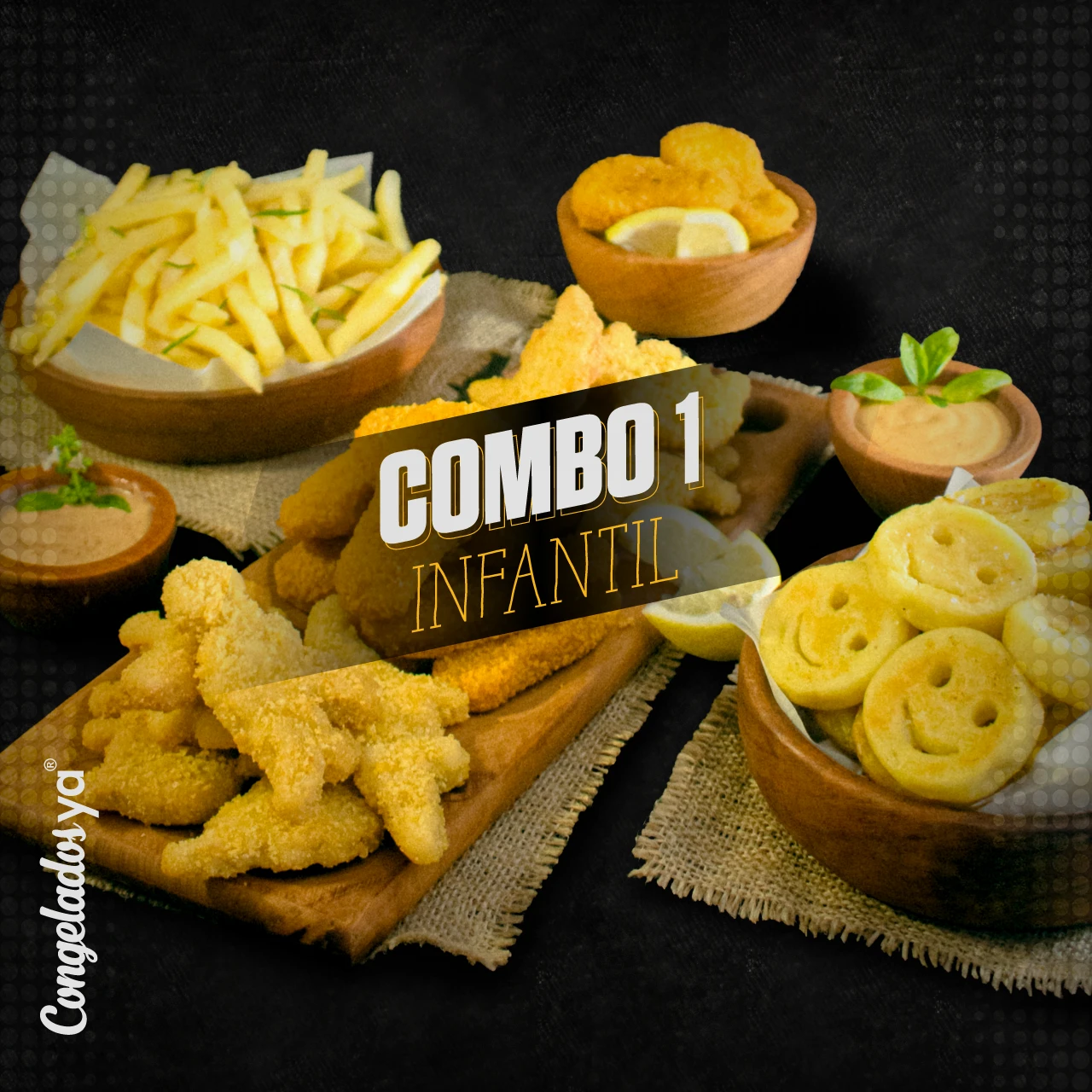 1 Kg. Papas bastón McCain1 kg. Papas carita McCain1 Kg. Patitas de pollo1 Kg. Ricosaurios de pollo